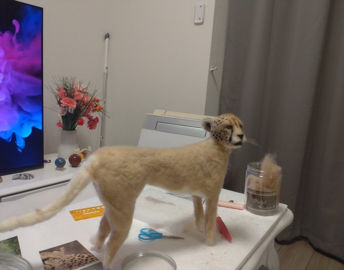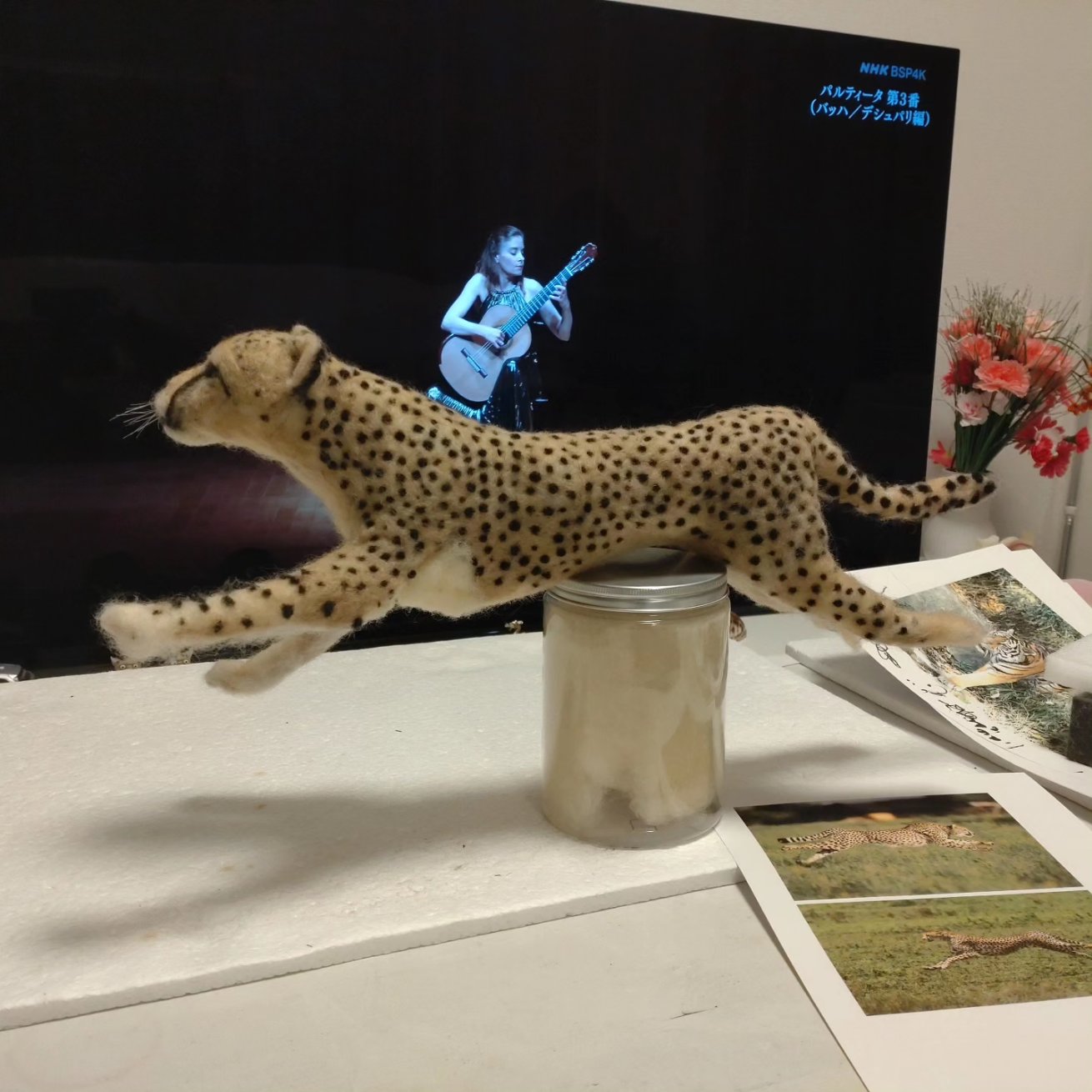 羊毛フェルトで作るリアルなネコ科大型動物の第3段として、チーター製作に着手しました。