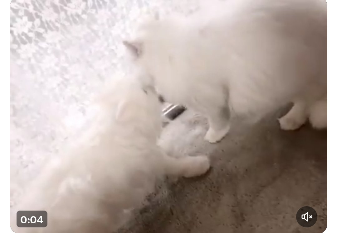 チンチラシルバーみるたんの写真提供頂いた方に、羊毛フェルトみるたんをプレゼントしました。私が羊毛フェルトのぬいぐるみを作り始めて、初めて人にあげました。リアルな猫ちゃんとの初対面はどのような感じになるのかちょっと興味あったのですが、なんと毛づくろいらしき行動をとってくれたようです。もしかしたらお友達として本物の猫ちゃんに認められたのかもしれません。作り手としては嬉しいかぎりです。